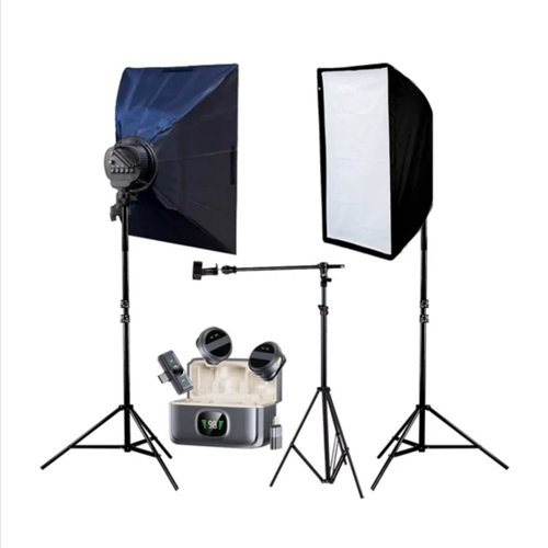 کیت کامل تولید محتوا – دو سافت باکس 5 لامپی RGB، میکروفون بیسیم سکهای و پایه موبایل T (با گارانتی)