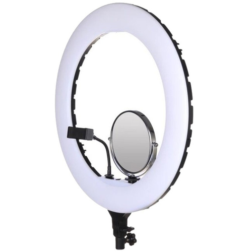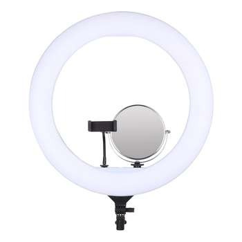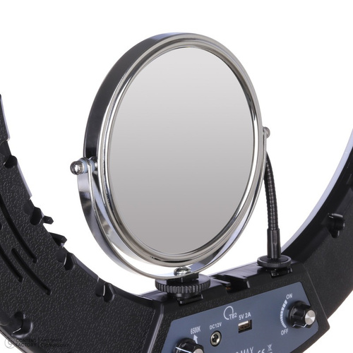 این رینگ لایت به شکل دایرهای و با قطر 50 سانتیمتر طراحی شده و نور را بهصورت کاملاً یکنواخت روی سوژه پخش میکند. وجود 3 عدد هولدر موبایل به همراه آینه مخصوص، آن را به گزینهای عالی برای میکاپ آرتیستها، بلاگرها و تولیدکنندگان محتوا تبدیل کرده است. آینه تعبیهشده کمک میکند تا هنگام فیلمبرداری یا لایو، کنترل دقیقتری روی آرایش و گریم داشته باشید.